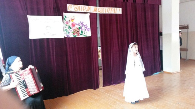 От имени учащихся и администрации УО, собравшихся в актовом зале учащихся, гостей и учителей, с днем матери поздравила директор школы Гарасаева А.С. Праздничное мероприятие для учителей и гостей подготовил и провел актив Совета школы , где самой лучшей половине человечества дарили песни, танцевали, а ученик 9 класса Адузов Масуд прочитал свое очередное стихотворение, собственного сочинения посвященное маме.