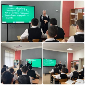 30.11.2023Отделом в Шалинском районе УФСБ России по Чеченской Республике совместно с МУ «Отдел образования Шалинского муниципального района Чеченской Республики» проведено профилактическое мероприятие в МБОУ «СОШ №1 п. Чири-Юрт» на тему: «История образования спецслужб (ФСБ РФ), роль и значение в обеспечении безопасности государства и общества.».