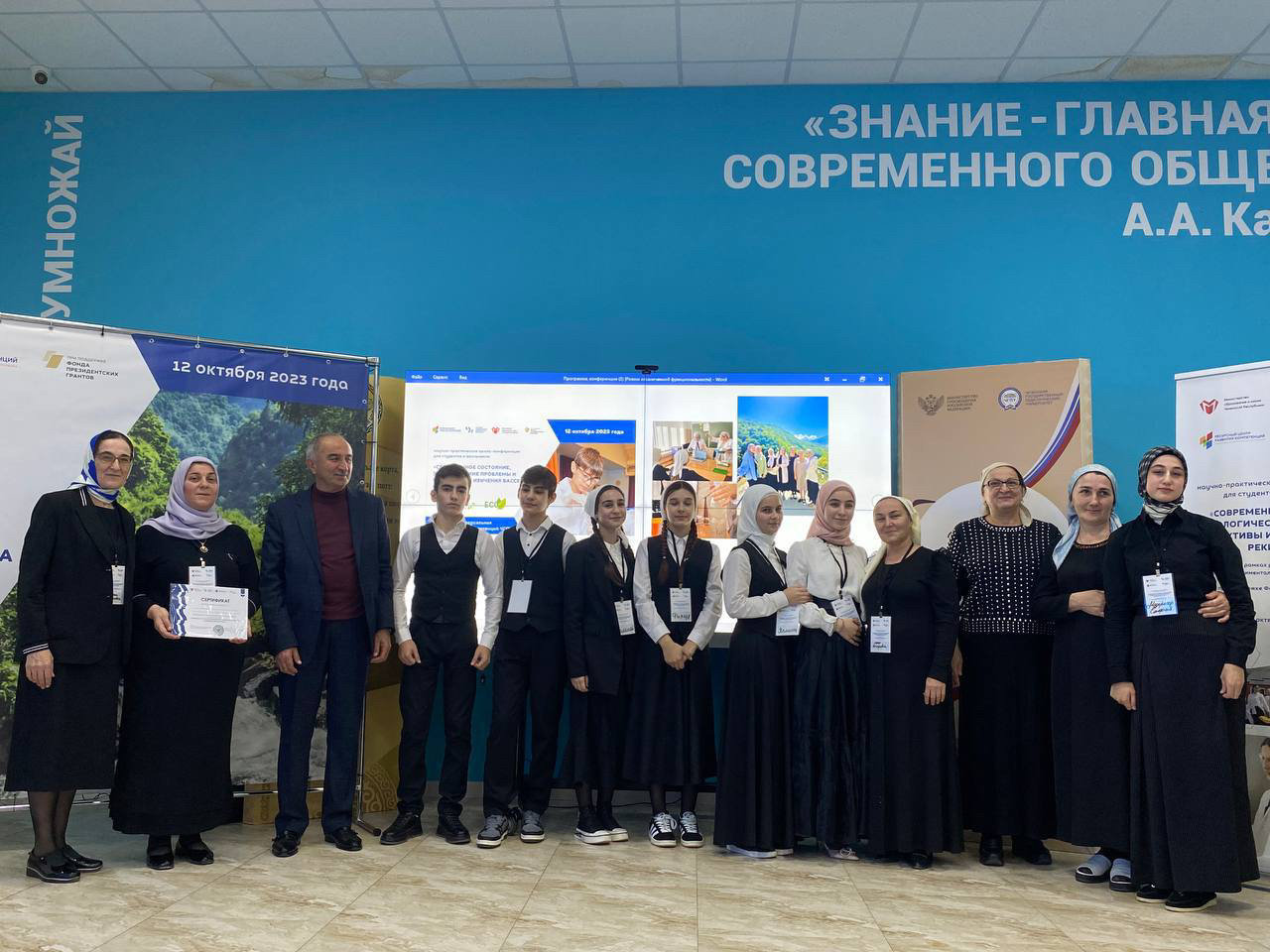 На полях конференции наши школьники презентовали научные доклады о проведении физико-химического анализа забора воды из реки Аргун с использованием полевой комплектной лаборатории исследования воды и почвенных вытяжек «НКВ», а также цифровых лабораторий RELEON по биологии и химии.