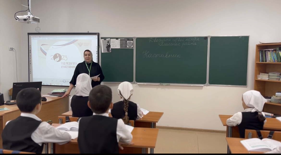 2023 год Указом Президента России Владимира Путина объявлен Годом педагога и наставника. Миссия Года – признание особого статуса педагогических работников, в том числе выполняющих наставническую деятельность. 21 ноября 2023г. в рамках Года педагога и наставника ,учитель русского и литературы Тесаева М.Ш. провела урок «Наставничество» в 5 классе.