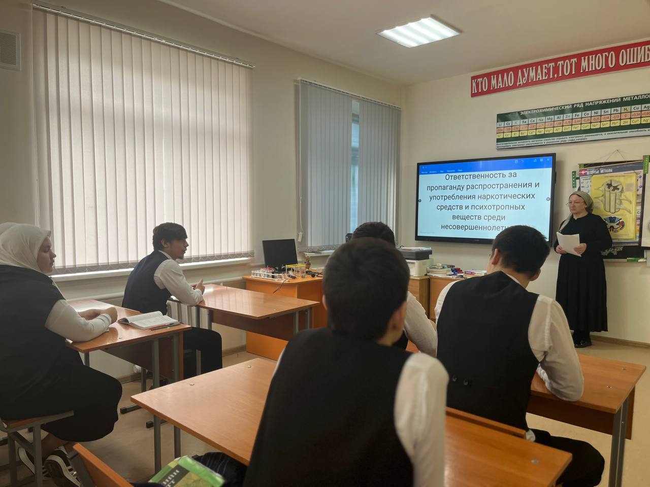 11.03.2024Отделом в Шалинском районе УФСБ России по Чеченской Республике совместно с МУ «Отдел образования Шалинского муниципального района Чеченской Республики» проведено профилактическое мероприятие в МБОУ «СОШ №1 п.Чири-Юрт» на тему: «Ответственность за пропаганду распространения и употребления наркотических средств и психотропных веществ среди несовершеннолетних».
