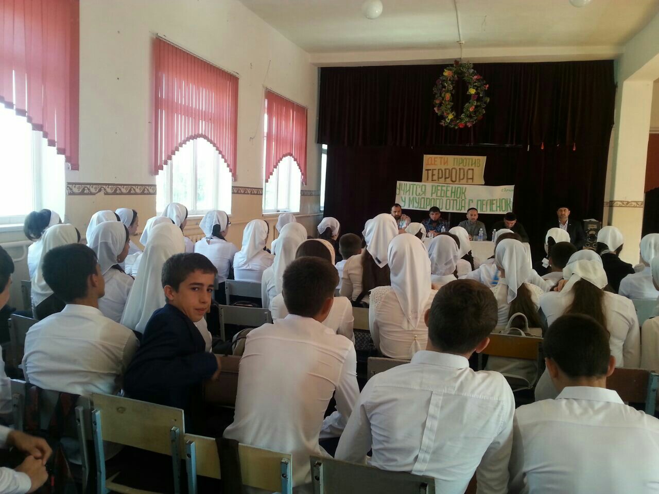 В актовом зале МБОУ СОШ √1 п.Чири Юрт 3 сентября прошла встреча учащихся с представителем силовых структур, имамом и администрацией села, приуроченная ко Дню солидарности борьбы с терроризмом
