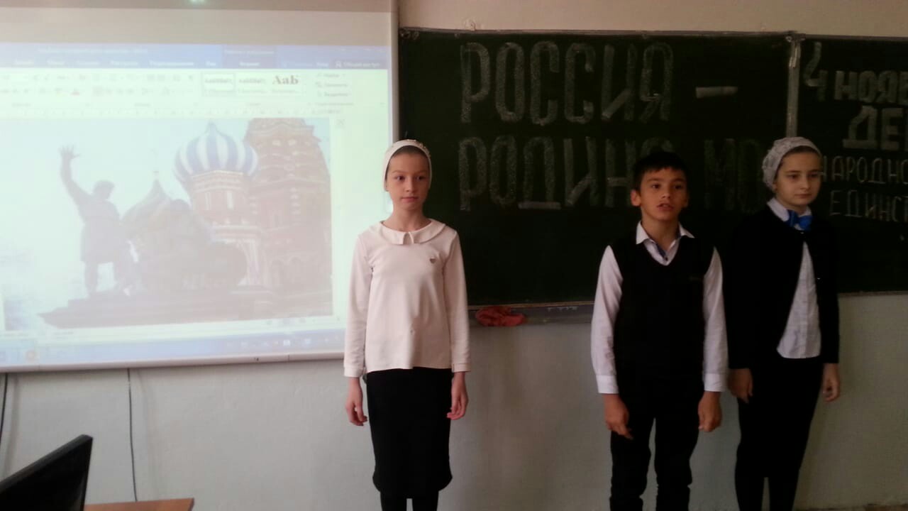 27.10.18 в СОШ1 пЧири-Юрт проведены классные часы в честь Дня Единства